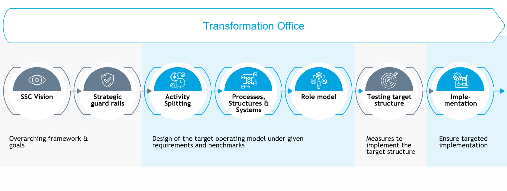 After a thorough examination of the suitability of relevant processes for possible bundling in a shared service center, the implementation of this project is initiated and intensively supported using BDO's structured and proven model. These programs are usually characterized by a high degree of interdisciplinarity. Not only transformation management - also tax law, labor law and, if necessary, but transformation law competencies are also required. Here, BDO is at your side with its holistic competence centers.